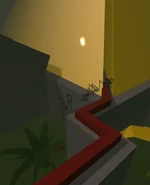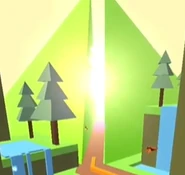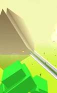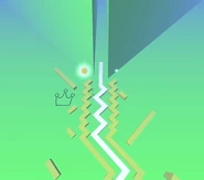 Before the Concluding Pyramid, there was a different idea for the finish line during the development of Through The Fog! which consisted of some kind of torch that would light up and rise upon reaching it. The idea of the finish line lighting up was maintained in subsequent versions of Through The Fog! with the tip of the pyramid illuminating, and later in Dancing Line, the detail of the pyramid's tip lighting up was removed.