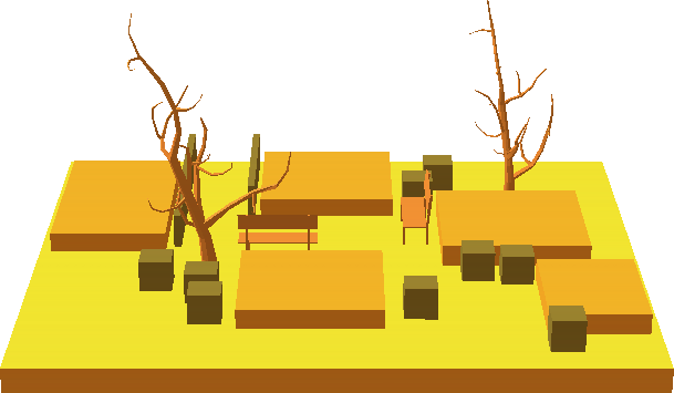 This level is like Tranquil Settlement: Both are themed off of autumn, have the same color palette, and have similar trees, leaves, & rocks.