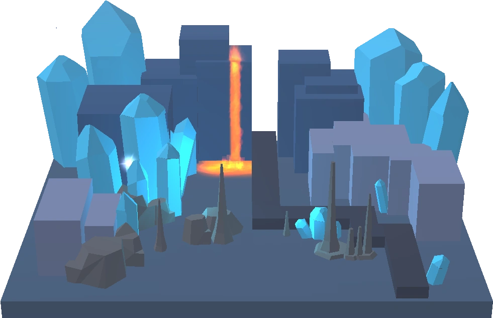 - Many crystals in the level have a tip/vertex surrounded by four faces, similar to an elongated dodecahedron.