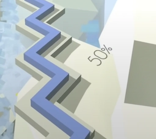 The 60% marker is floating in the air to the right of the path.